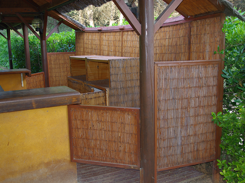 Chironguito de playa hecho en mimbre. La barra del bar y todos cerramientos están hechos en mimbre.